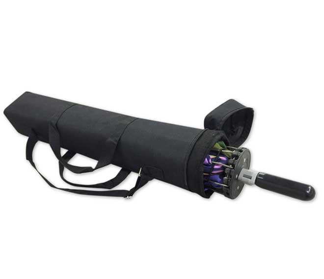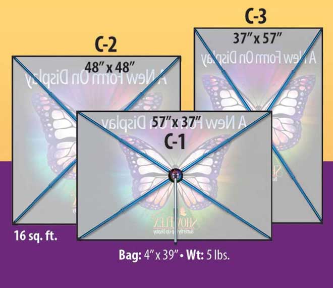 Imagine, a tabletop display so compact that it weighs 5 pounds and sets up effortlessly in 30 seconds. ShowFlex eliminates the need for bulky pop-up type displays that are expensive to ship or tension fabric units with multiple parts and detached graphics that must be installed every time you set up. With ShowFlex, simply slide the hub to unfold the arms, lock the hinged leg and you are ready to show. Kit Includes: ShowFlex Hardware, Vibrant Dye Sub Graphic and a Padded Nylon Travel Bag. ShowFlex graphics are printed on vibrant dye-sub, wrinkle resistant knit fabric that remains attached when packed for fast easy set-up.
