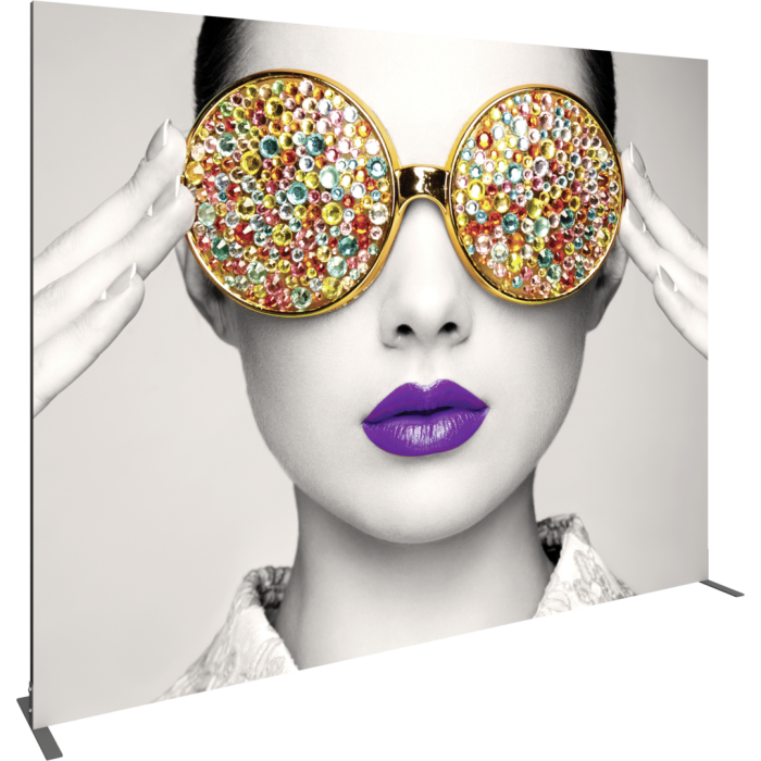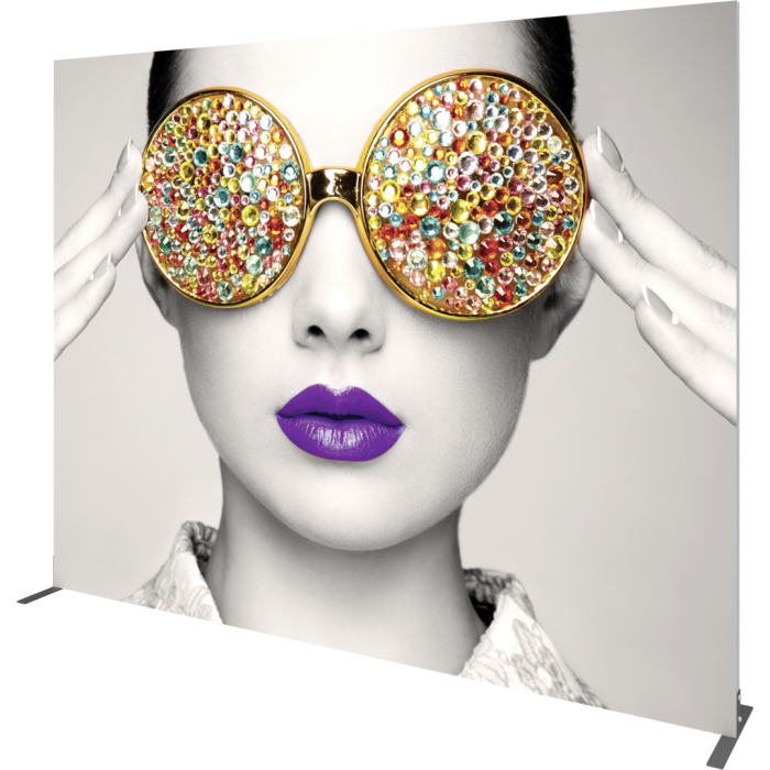 Vector Frame™ fabric banner R05 is a modern, extrusion-based fabric graphic banner display measuring 118.98″W x 94.74″H. The 2″ aluminum extrusion frames are easy to assemble and disassemble and come with the choice of single-sided or double-sided push-fit SEG fabric graphic murals. Vector Frame banner R05 can be used to display messaging or art in a retail, corporate, event or trade show environment and more.